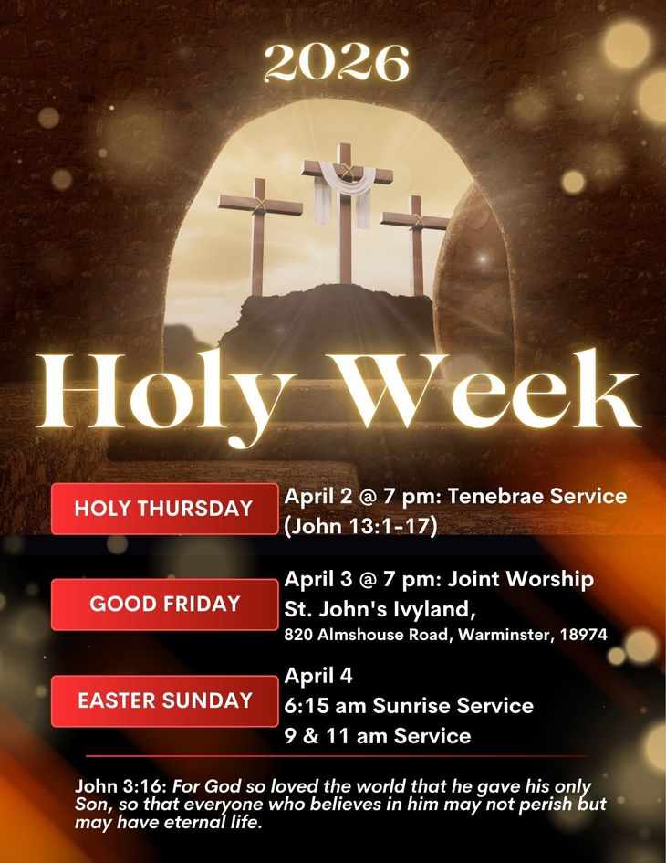 Good Friday: April 3 @ 7 pm: Joint Worship at St. John’s Ivyland